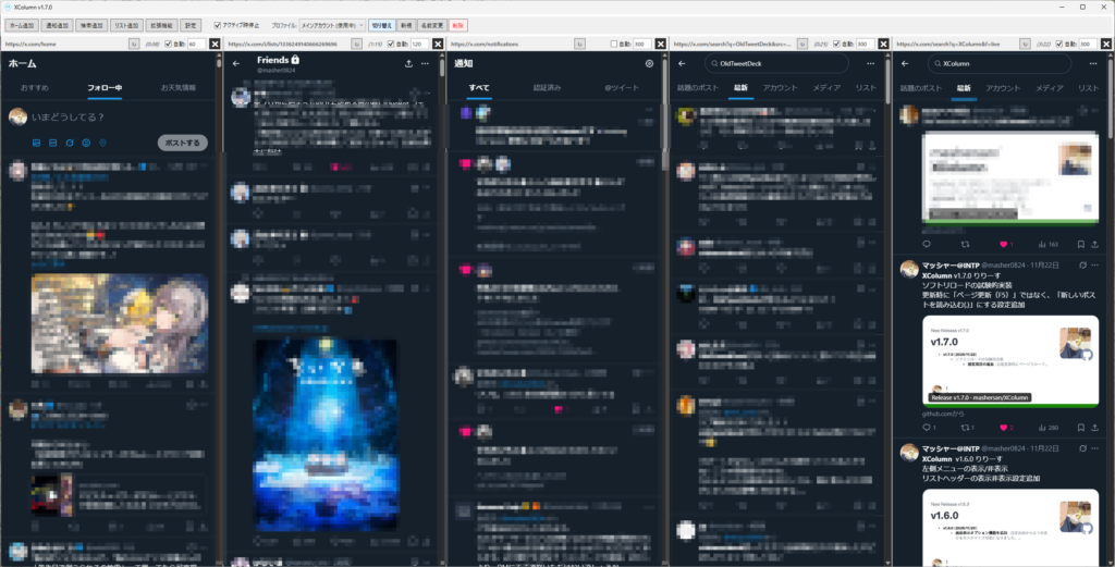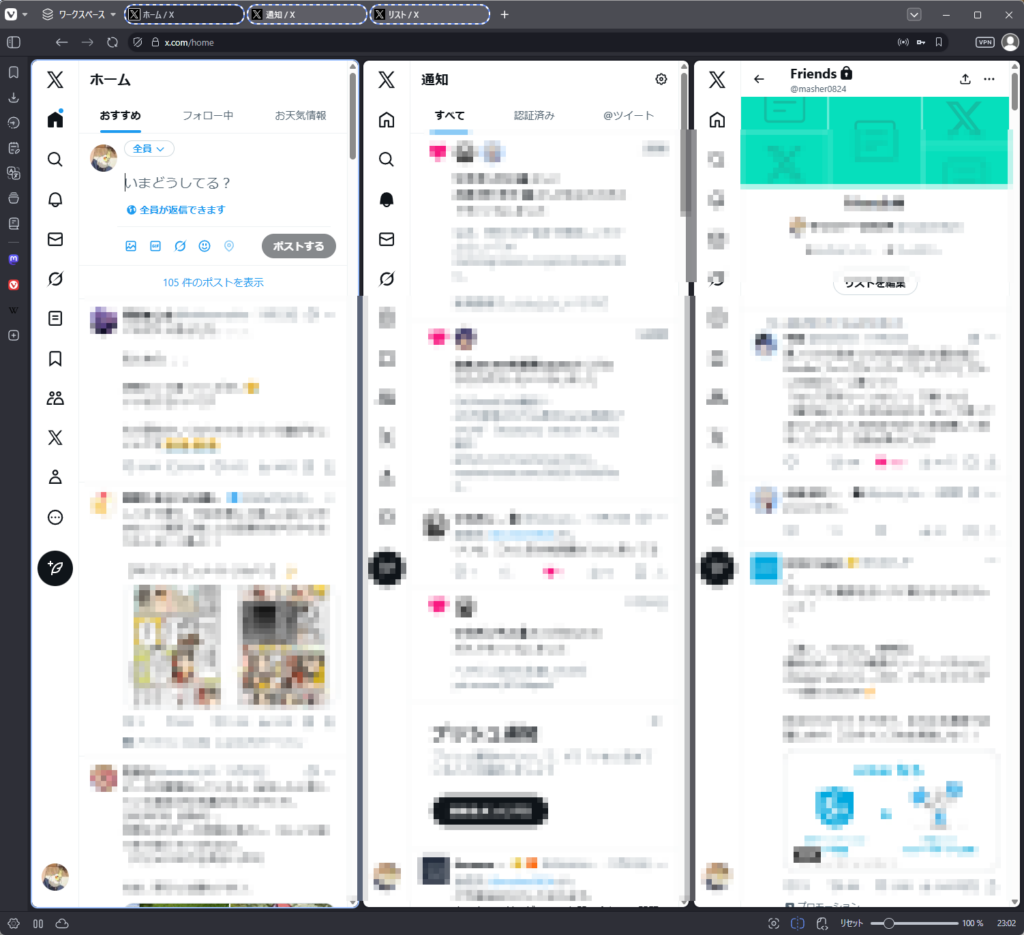 「凍結の原因は非公式な方法でAPIを利用していたからではないか?」という説があったため、「APIを使わず、普通にブラウザでXを開いて横に並べれば安全ではないか?」と考え作成しました。